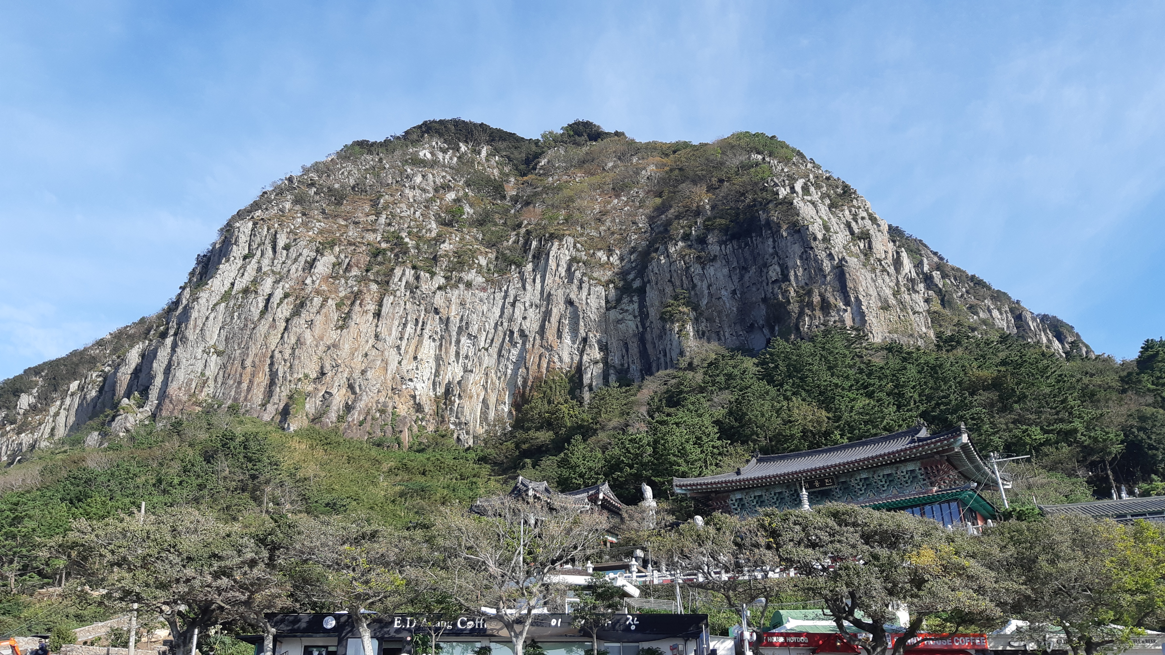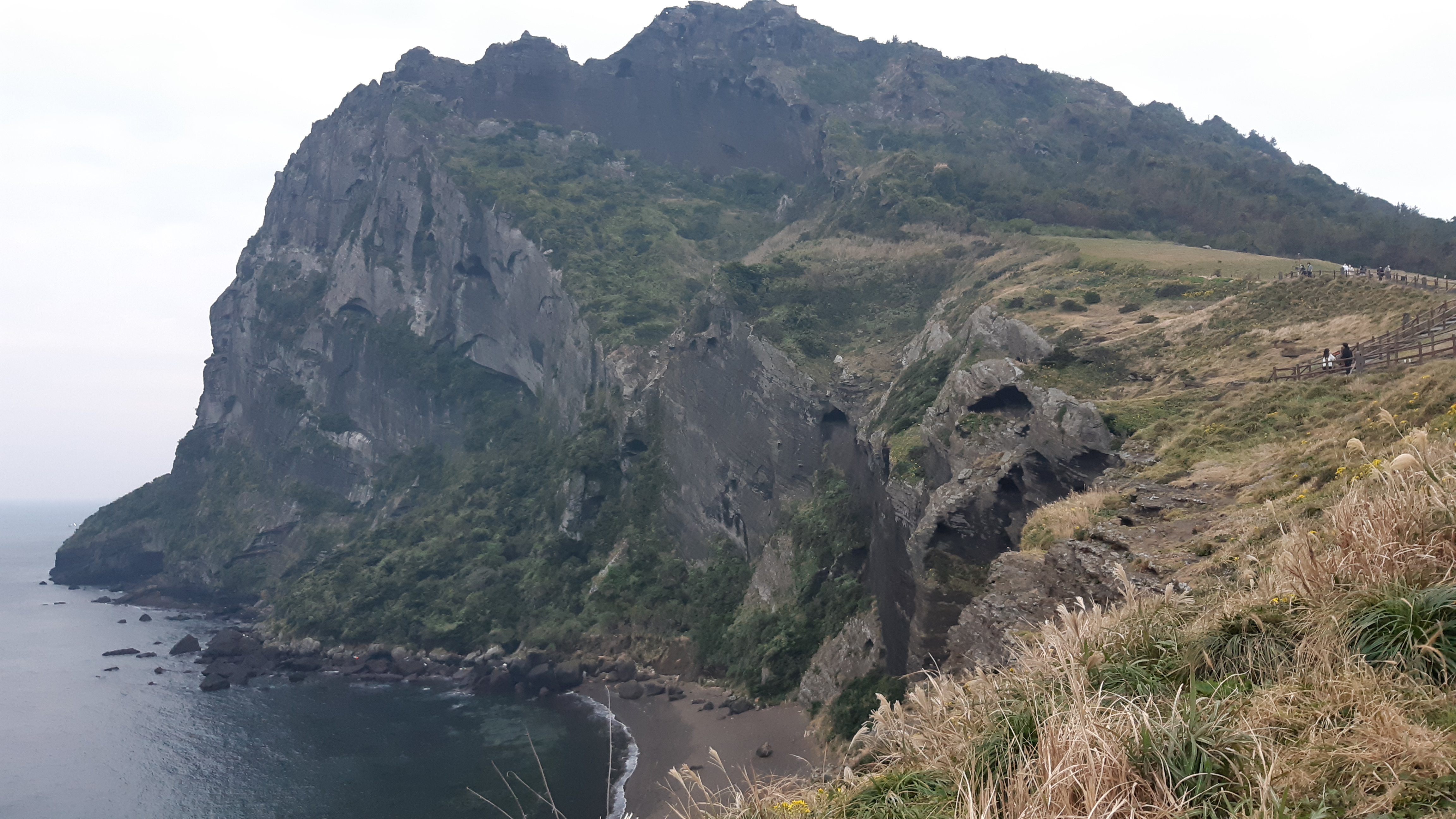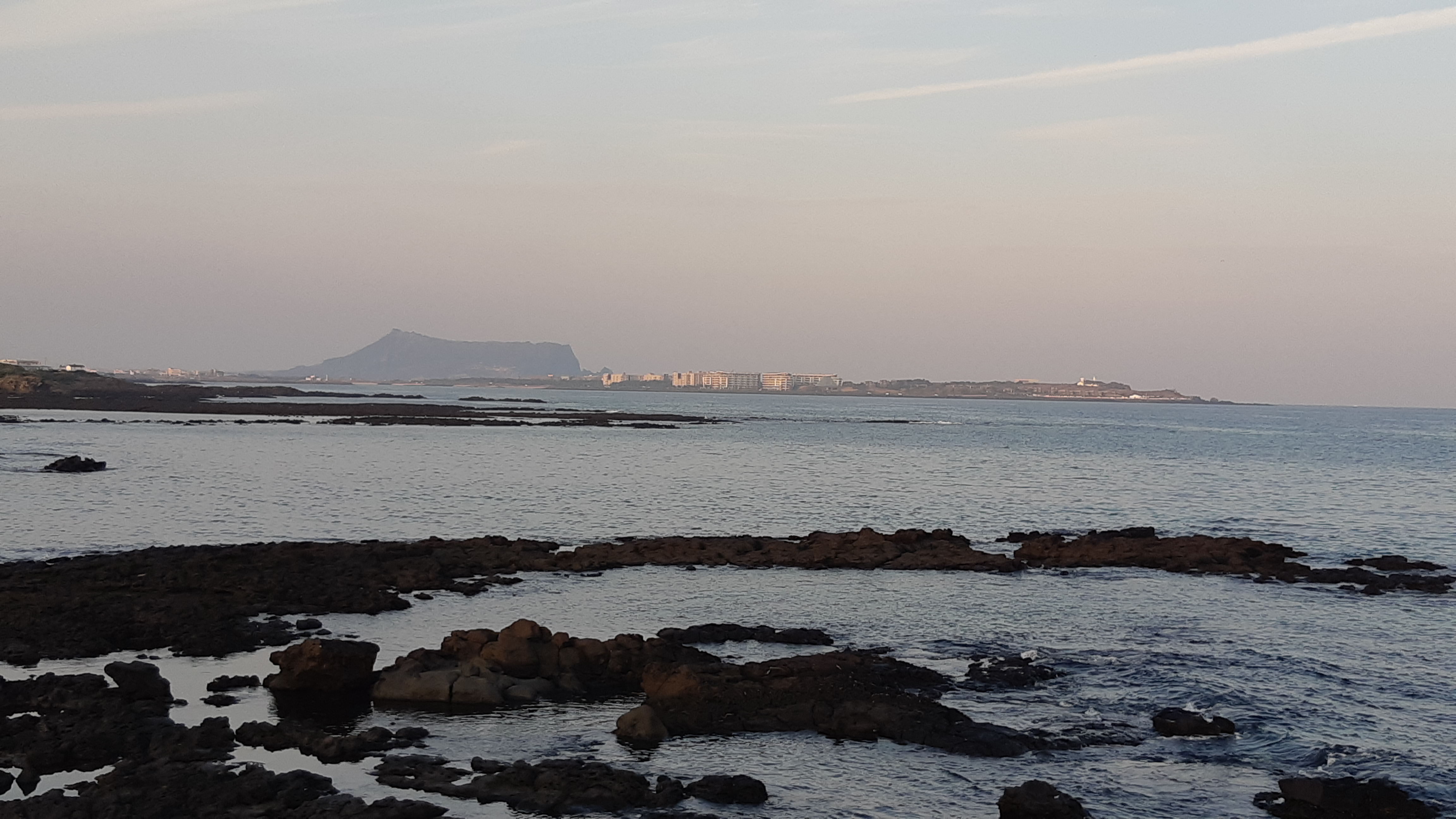체력이 급격히 떨어져 에너지 보충...2일차 숙박지인 성산일출봉이 보인다.