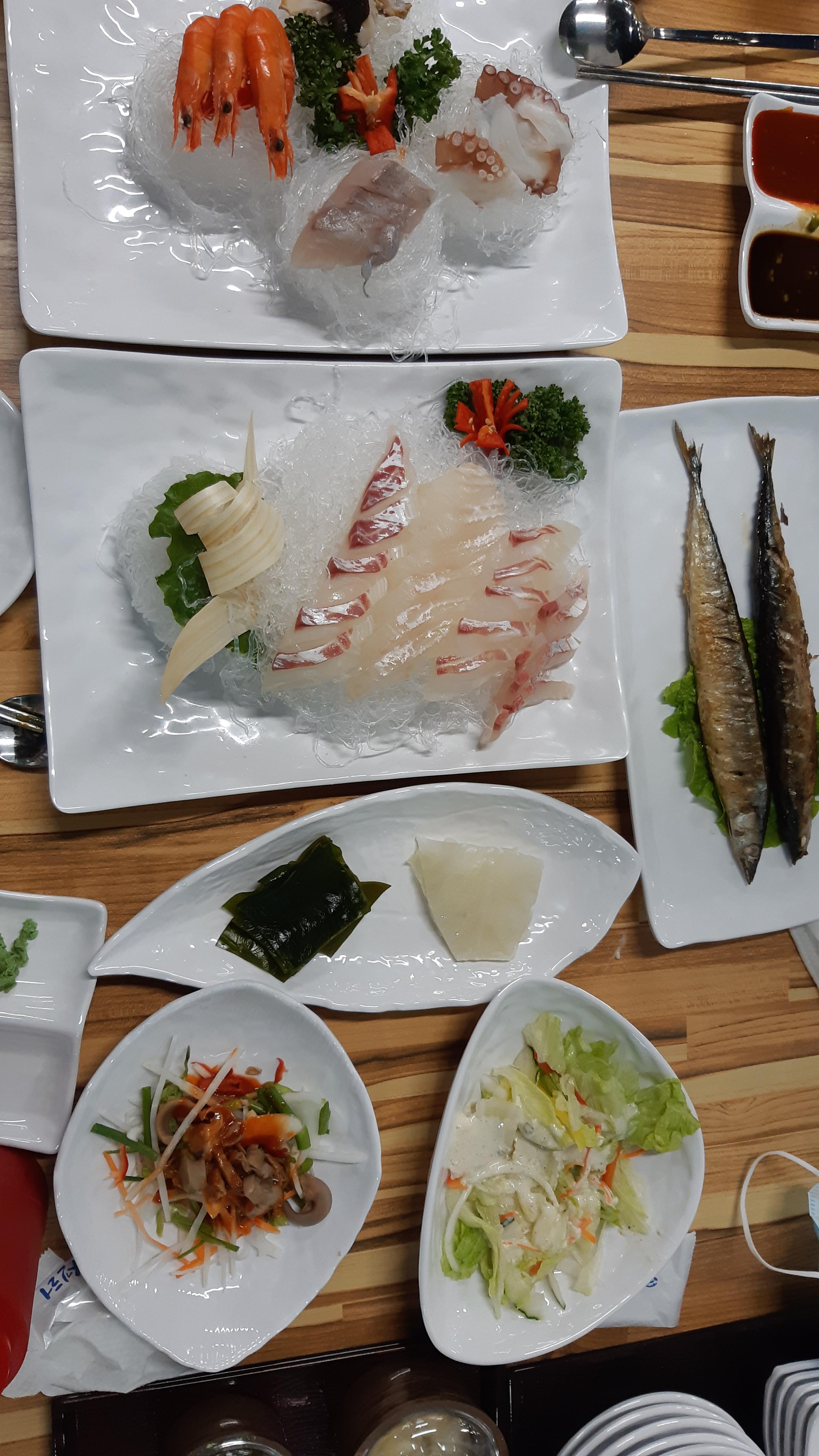 숙소에서 여장을 풀고 수협에서 운영하는 회센타에서 회정식 한상. 가격대비 최고
