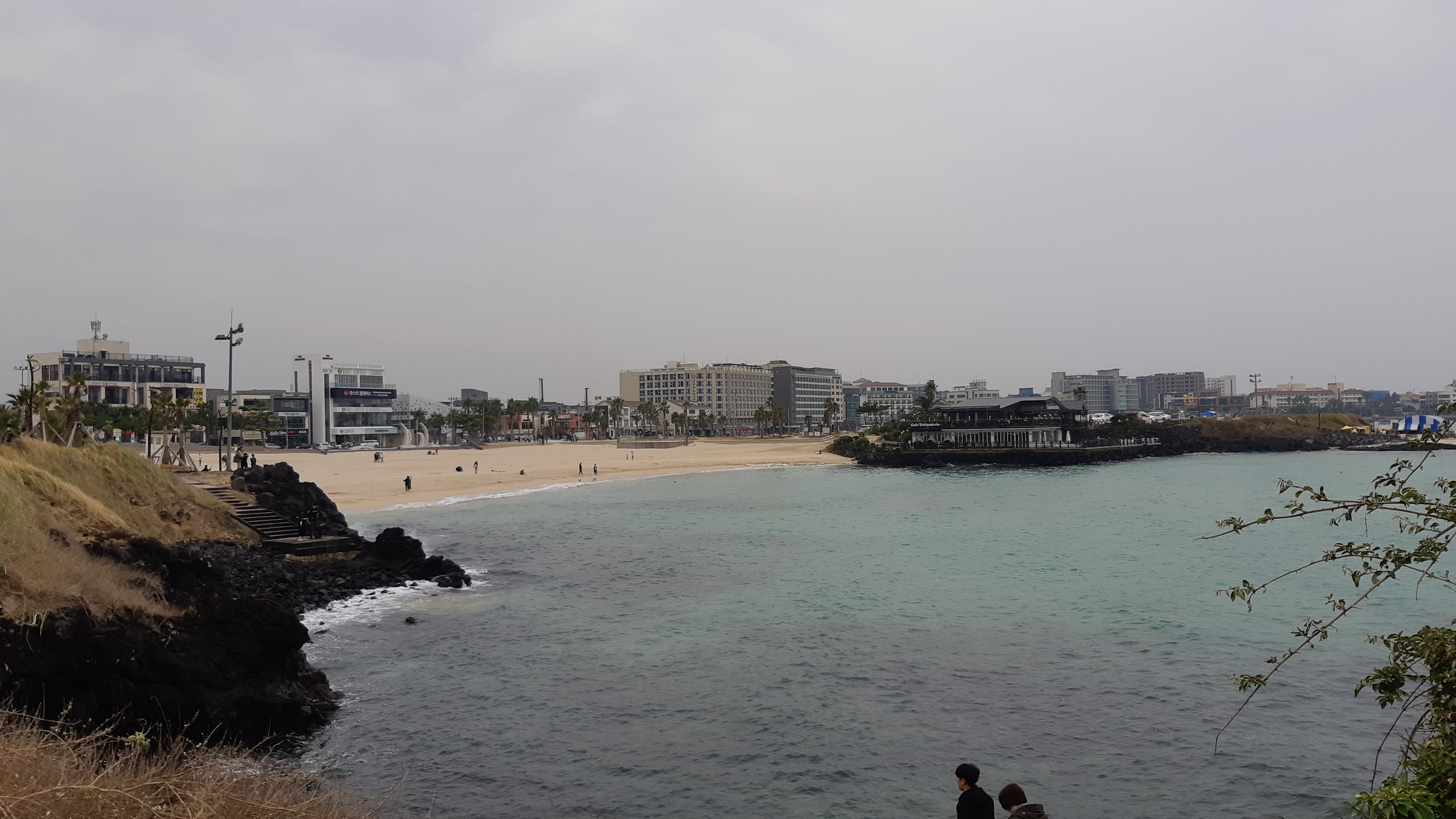 해수욕장 모래가 색깔이 좀 다르게 흰색이다.