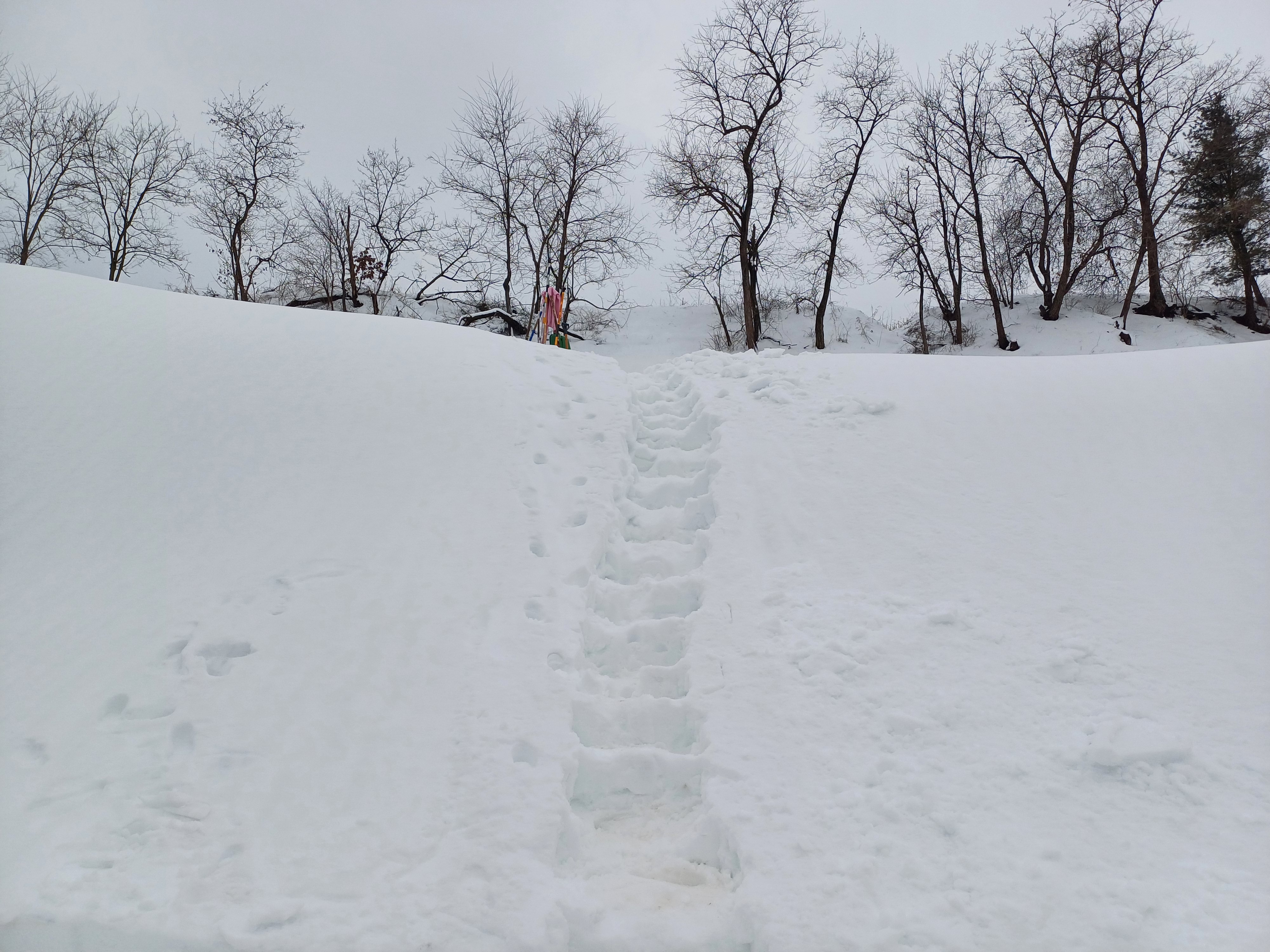 적설량이 부족해 관광객을 위해서 인공눈을 만들어 놓은 듯