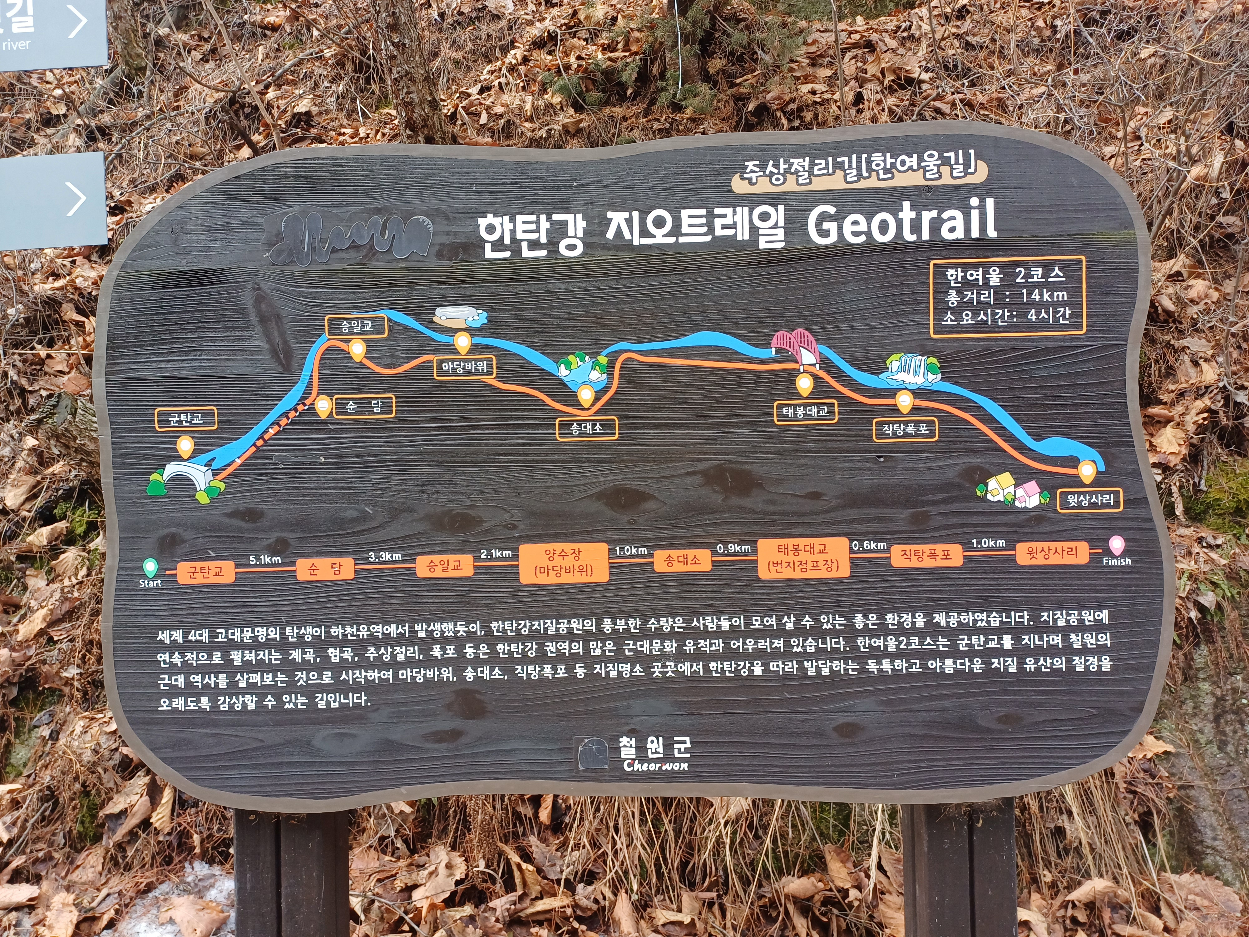 태봉교에서 출발해 순담계곡주차장까지 트래킹(8.5km,약2시간30분소요)하고