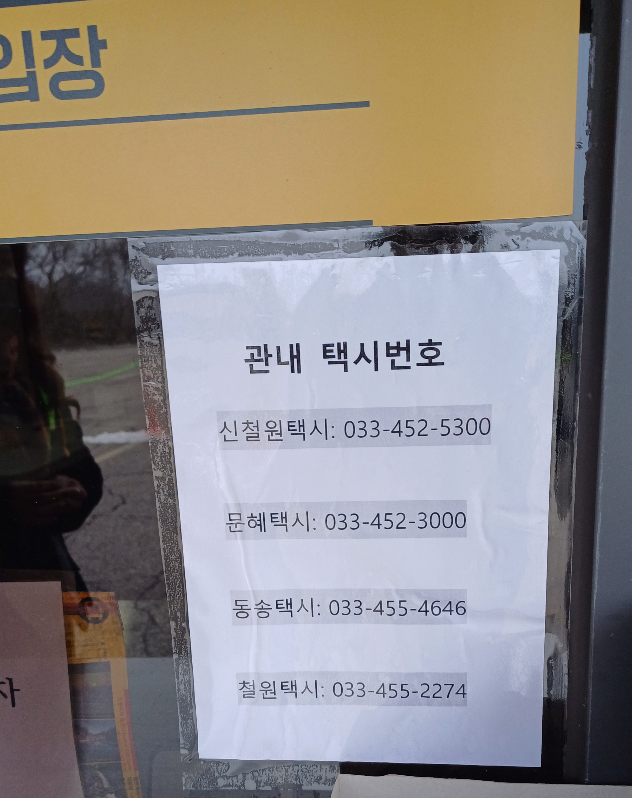 복귀하는 과정에 택시가 필요한 경우 대비 관내 택시 전화번호가 적혀있다.